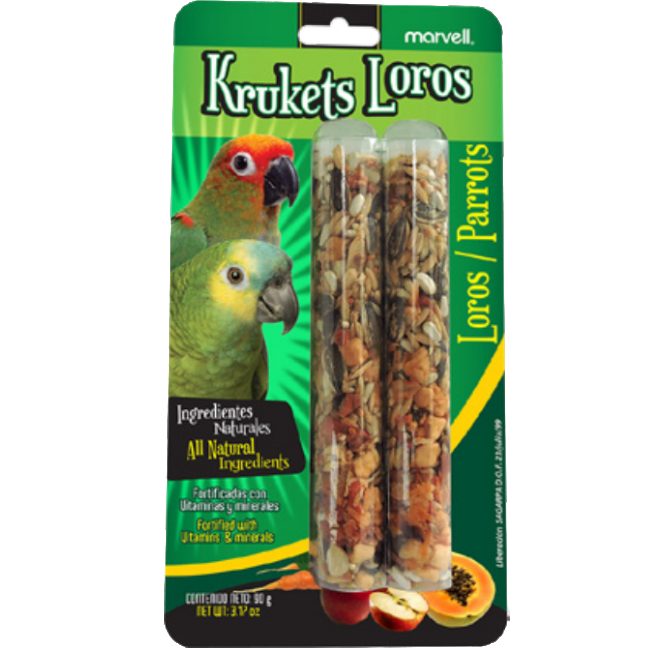 Barritas crujientes con semillas, granos, frutas y pellets que proporcionan una nutrición balanceada y saludable.